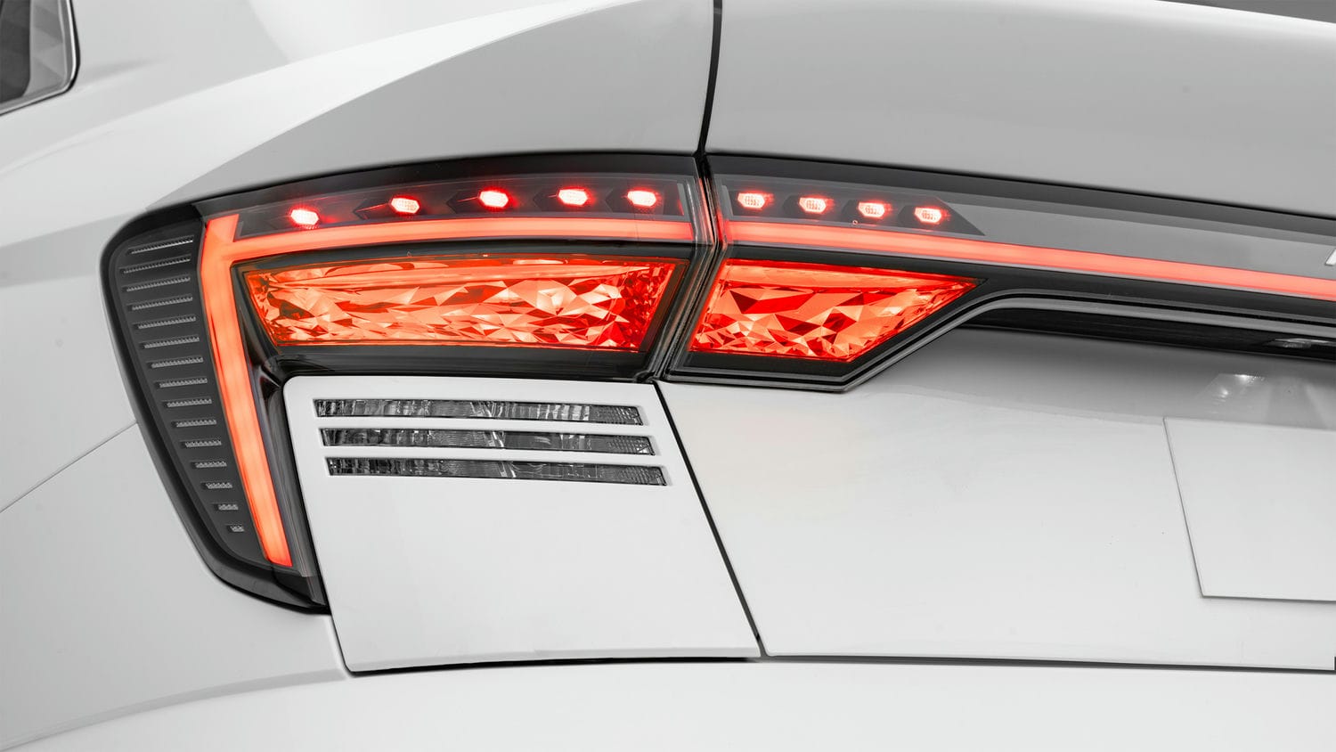 Điểm nhấn ngoại thất nằm ở dải đèn định vị nằm ngang đầu xe. Đèn pha LED đặt thấp tích hợp và nối liền với lưới tản nhiệt. Đuôi xe góc cạnh với tạo hình dốc ngược về sau và cũng có dải LED định vị như phía trước. Cụm đèn hậu LED hình chữ L mới. Bên thân dập nổi với những đường gân tạo hình hầm hố và cơ bắp.