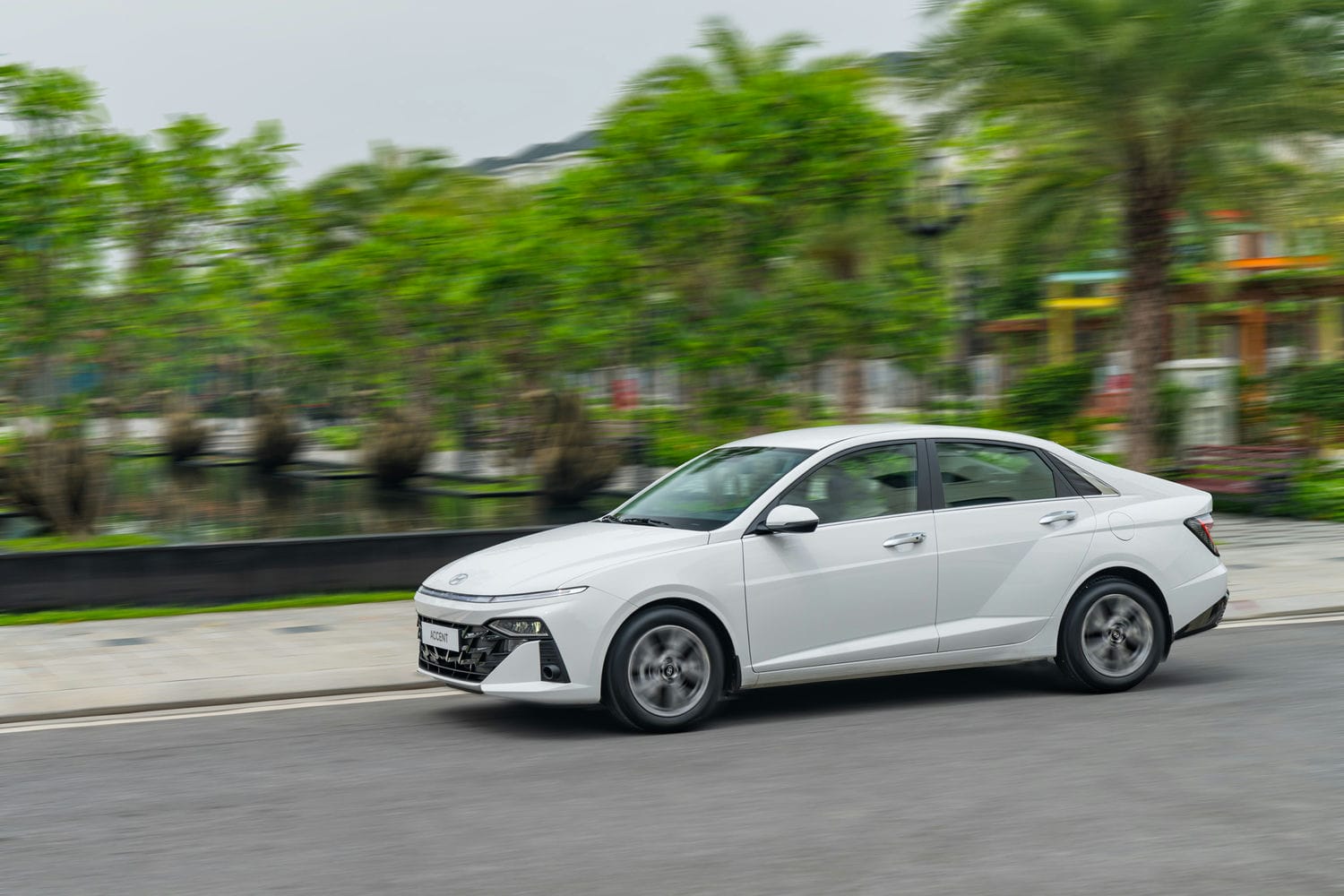 Accent thế hệ mới ứng dụng khung gầm mới với bổ sung thép siêu cường và nhiều bộ phận khác sử dụng thép độ cứng cao. Hệ thống khung gầm mới của Accent 2024 đạt chuẩn an toàn 5 sao của Global NCAP, theo chia sẻ của Hyundai.