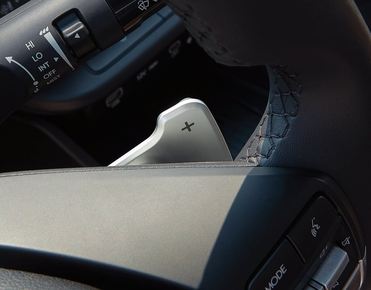 Hệ thống âm thanh 6 loa tiêu chuẩn. Vô-lăng bọc da, thiết kế hai chấu, tích hợp nhiều phím điều khiển chức năng. Bản cao tích hợp lẫy chuyển số sau vô-lăng.