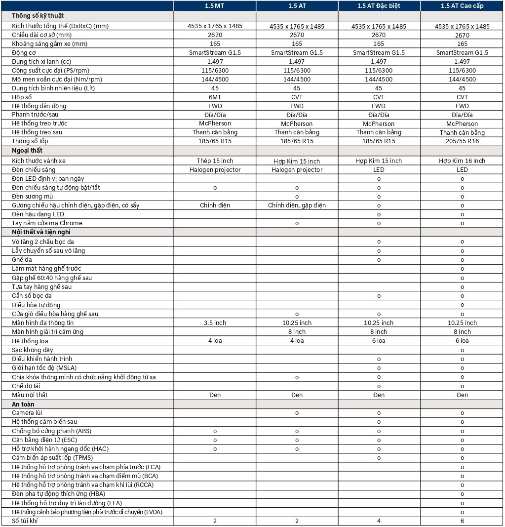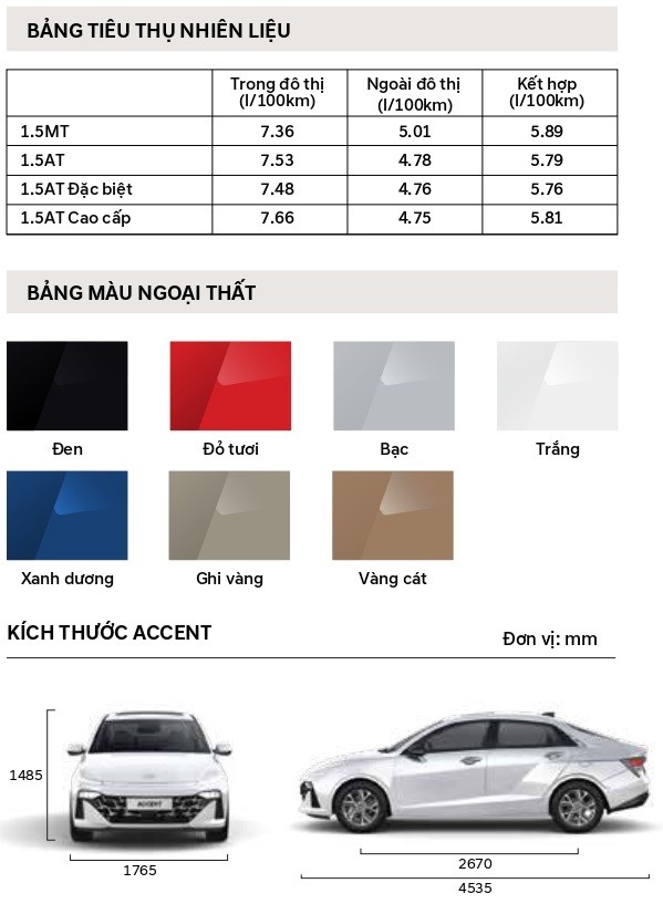 | Accent 1.5 AT Đặc biệt: | 529.000.000 ₫ đ |