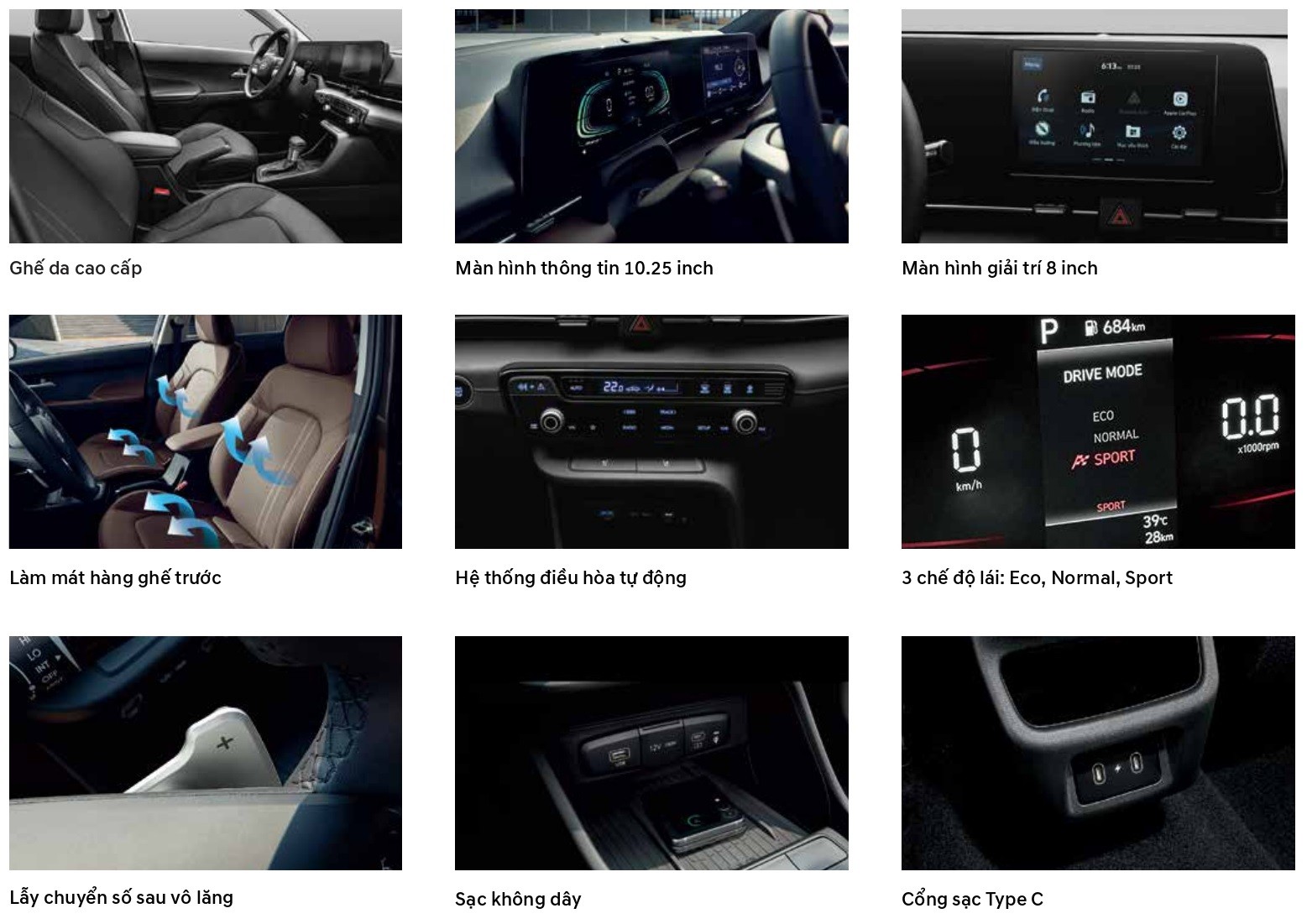 Ghế bọc da, tích hợp tính năng làm mát trên một số phiên bản. Hệ thống điều hòa tự động, cửa gió điều hòa ghế sau. Ở thế hệ mới, Accent 2024 trang bị cổng sạc USB-C cho hàng ghế trước và sau. Sạc không dây, khởi động xe từ xa.