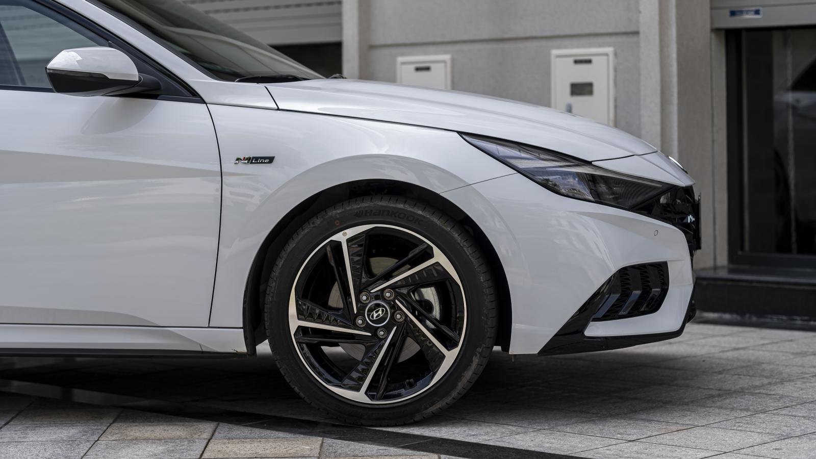 Riêng bản thể thao, Hyundai trang bị cho Elantra N-line bộ bodykit "cực chất" với các điểm nhấn nằm ở lưới tản nhiệt gắn logo "N Line", ốp trang trí bên viền hốc hút gió, gương chiếu hậu màu đen, cánh lướt gió sau và chụp ống xả mạ crôm.