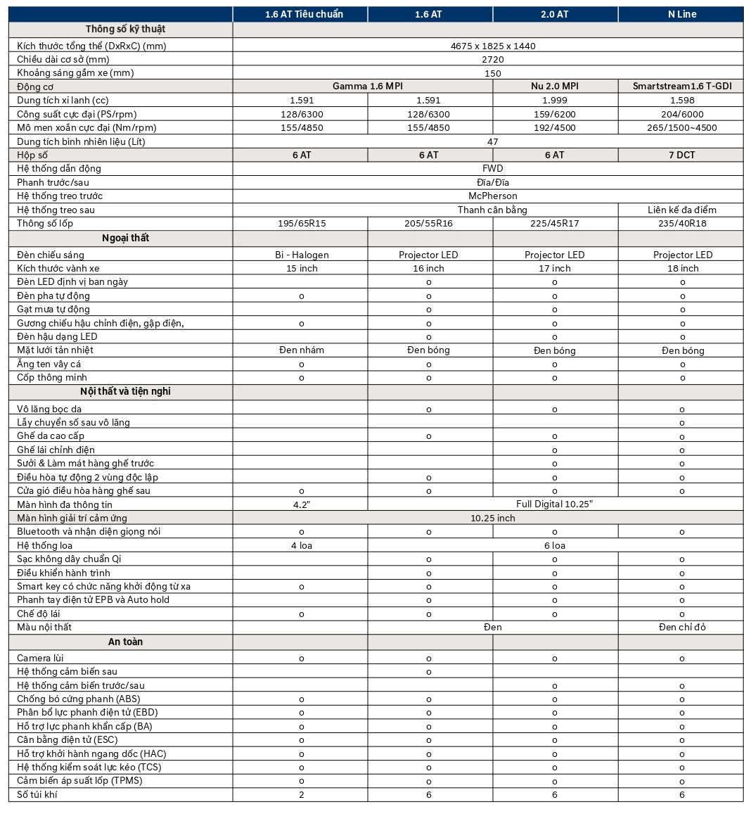 | Elantra 1.6 AT - Tiêu chuẩn : | 599.000.000 đ |