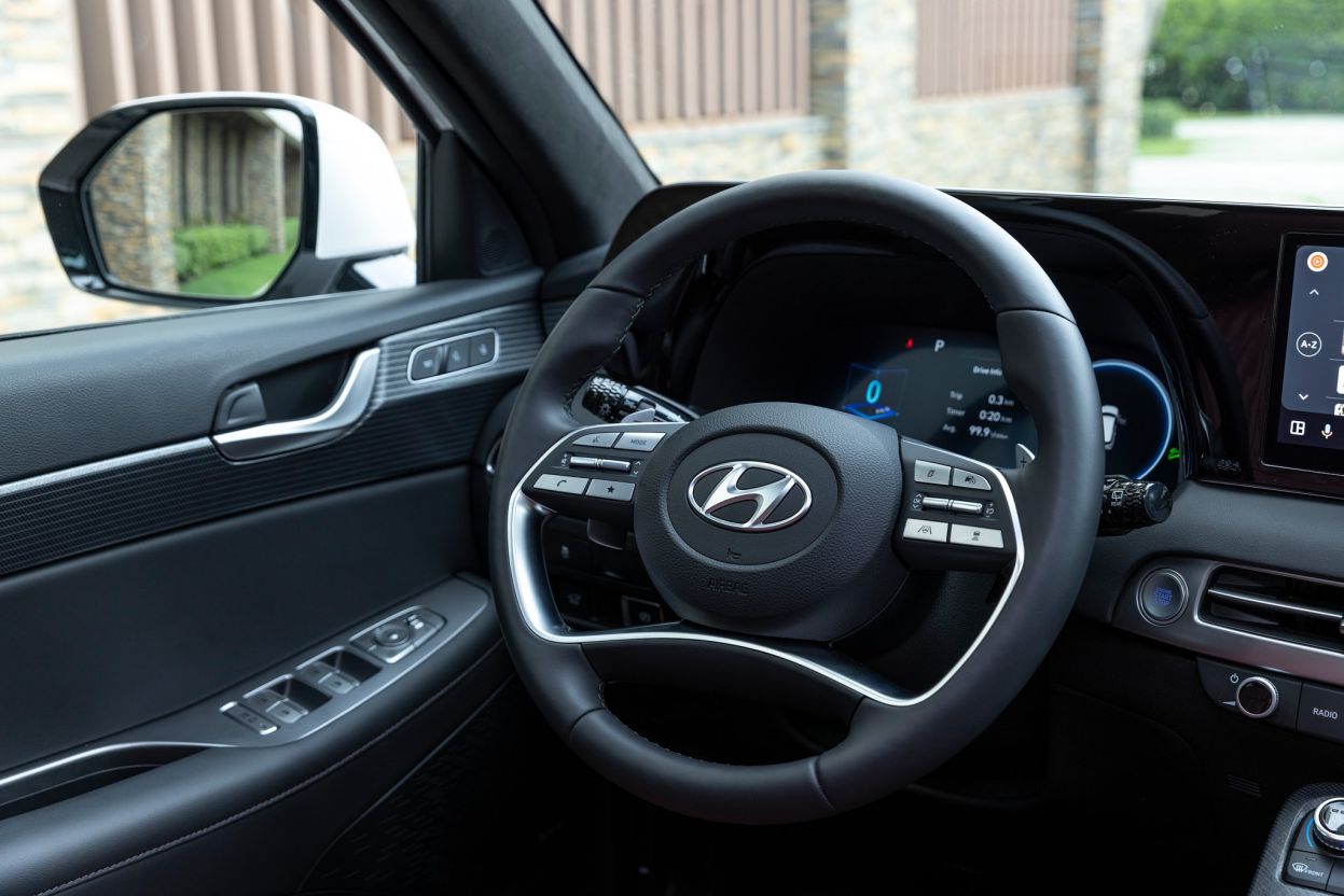Xe Hyundai Palisade thế hệ mới sử dụng vô lăng đa chức năng 3 chấu mạ kim loại, bọc da cho cảm giác cầm nắm mềm mại. Ngay phía sau tay lái là bảng đồng hồ được tích hợp thêm màn hình kỹ thuật số với chất lượng hiển thị sắc nét.