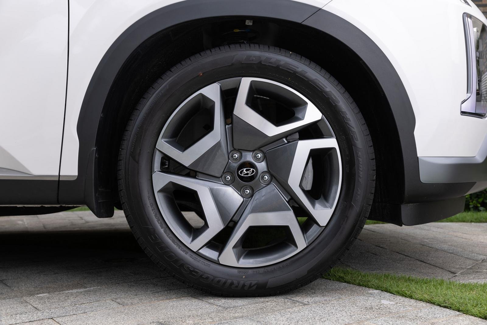 Hệ thống giảm xóc của Hyundai Palisade 2024 hoạt động rất tốt nhờ treo trước/sau MacPherson/liên kết đa điểm và bộ lốp dày có thông số 245/60R18 hoặc tuỳ chọn 245/50R20. Ngoài ra, xe còn sử dụng hệ thống phanh trước/sau đĩa thông gió.