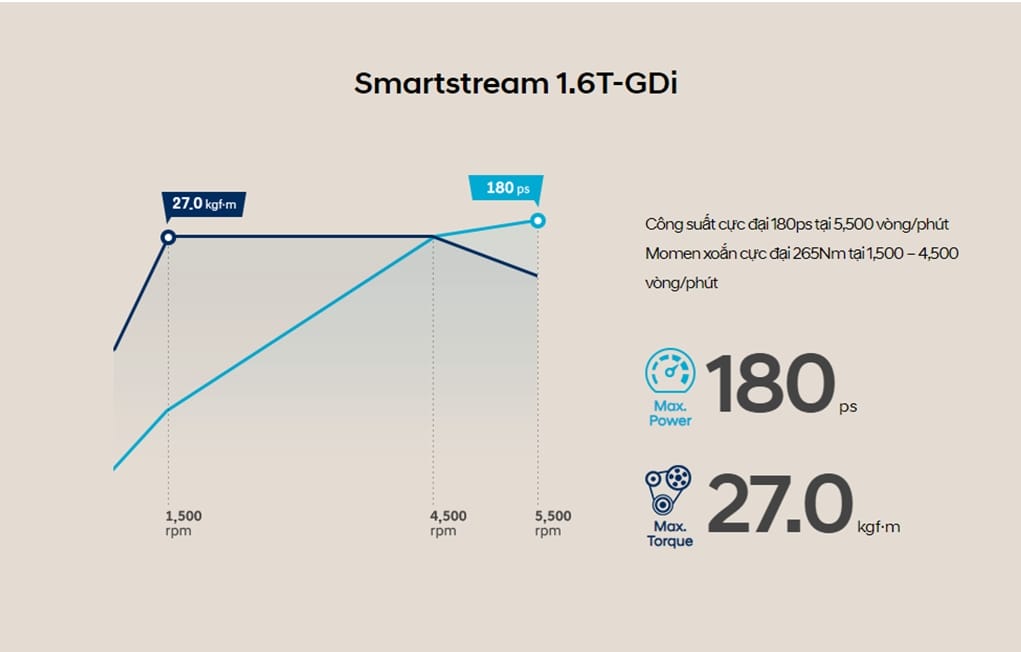 Hyundai Tucson tiếp tục được trang bị 3 phiên bản động cơ thế hệ Smartstream. Động cơ Smartstream 1.6L T-GDi (mã hiệu G4FP) cho công suất cực đại 180 mã lực tại 5.500 vòng/phút cùng Momen xoắn cực đại 265Nm tại 1.500 ~ 4.500 vòng/phút. Động cơ này ứng dụng công nghệ van biến thiên liên tục CVVD thay thế cho động cơ Gamma 1.6L T-GDi cũ được tối ưu gia tăng 4% công suất, tăng 5% hiệu suất cũng như giảm 12% lượng khí thải. Phiên bản động cơ này đi kèm hộp số ly hợp kép 7 cấp DCT và hệ dẫn động 4 bánh toàn thời gian HTRAC.