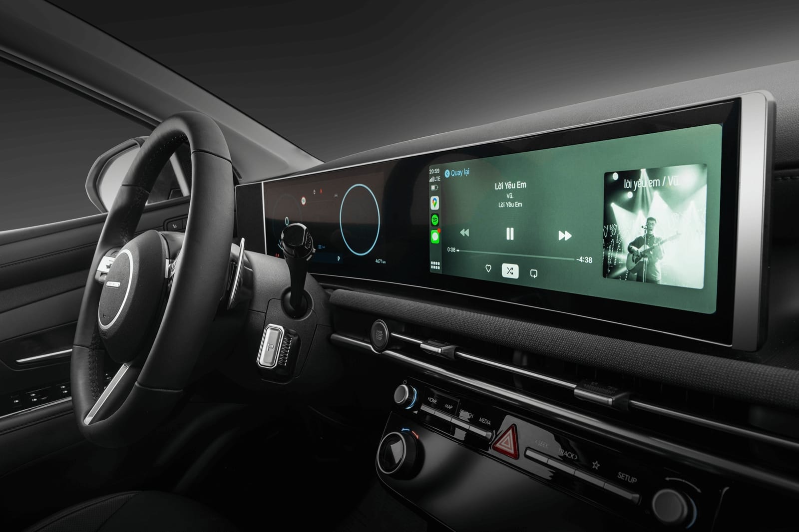 Màn hình này hỗ trợ Android Auto/Apple Carplay không dây. Xe được trang bị hệ thống đèn LED nội thất, có thể điều chỉnh 64 màu giúp làm tăng thêm tính thẩm mĩ cho không gian.