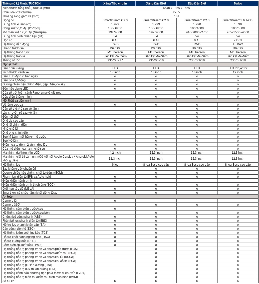 New Tucson 2.0 Dầu Đặc biệt: | 979.000.000 đ |